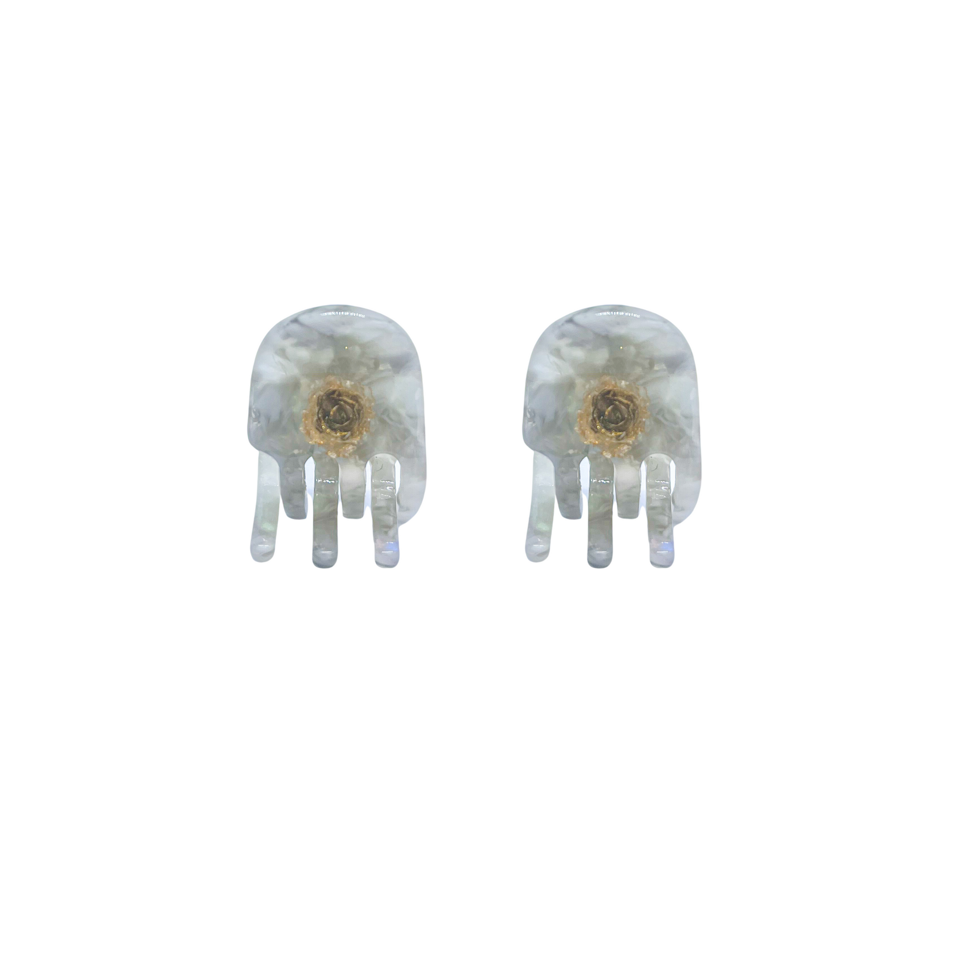 Delicada e versátil, a nossa Lili em tons cinza e branco com camélias traz o charme das flores em um design prático. É ideal para compor penteados casuais e produções delicadas.