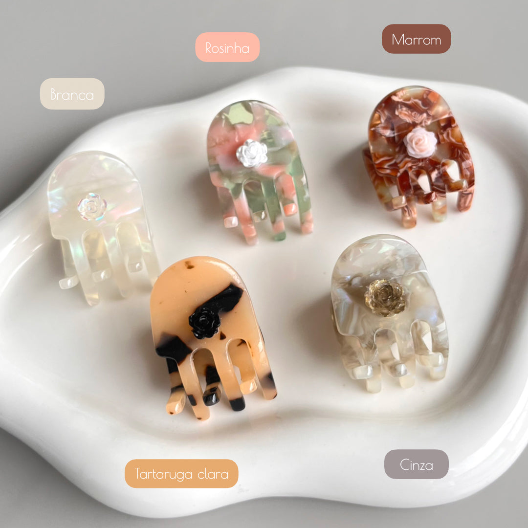 Delicada e versátil, a nossa Lili tartaruga clara com camélias traz o charme das flores em um design prático. É ideal para compor penteados casuais e produções delicadas.